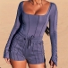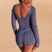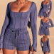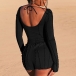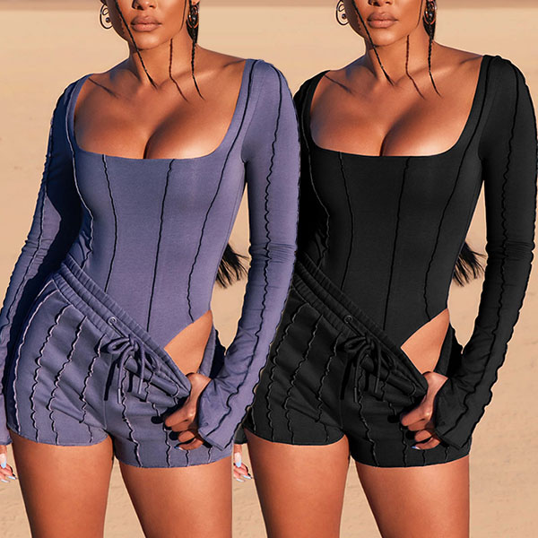 Sexy Backless Square Collar Long Sleeve Bodysuit + Shorts Two-piece Set