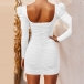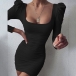 Sexy Backless Square Collar Long Sleeve Solid Color Tight Dress