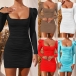 Thanks to the fit silhouette design,your slender figure can have a full display in this dress. Solid color style,the backless and square collar design make this piece look so sexy and alluring. You can easily win more eyes when you wear this little stunner.