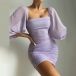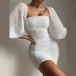 Sexy Backless Square Collar Puff Sleeve Slim Fit Printed Mini Dress