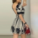Sexy Backless Square Collar Short Sleeve Sim Fit Printed Dress