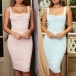 Sexy Backless Square Collar Solid Color Slim Fit Sling Dress