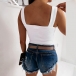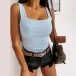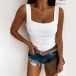 Sexy Backless Square Collar Solid Color Slim Fit Sling Tank Top
