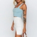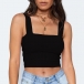 When you wanna flaunt off your slender waist,this crop top is a good solution. This sling top comes with a solid color,with backless and square collar design,which can easily enhance your feminine appeal. Matching with your high waist bottoms would be a good idea.