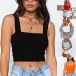 Sexy Backless Square Collar Solid Color Sling Crop Top