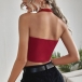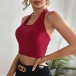 Sexy Backless Square Collar Solid Colro Slim Fit Halter Crop Top