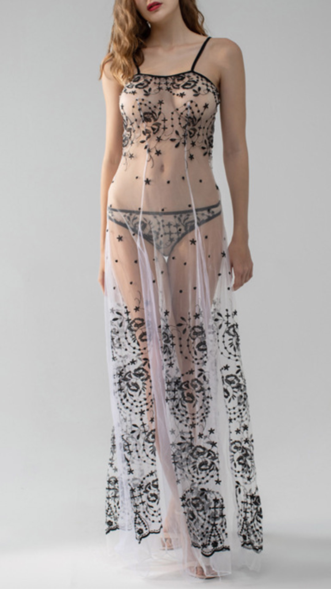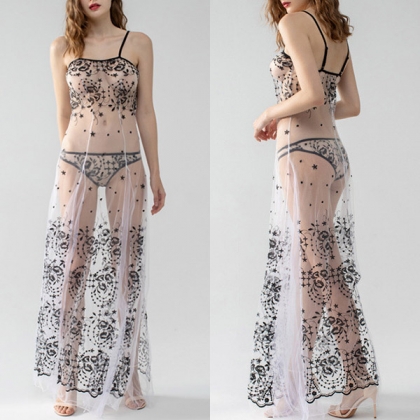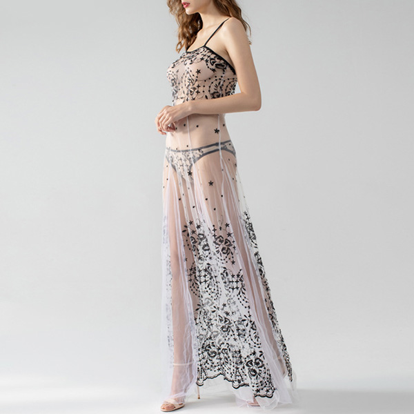 Sexy Backless Star Sequin Spliced See-through Sling Dress