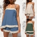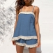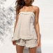 Sexy Backless Tassel Spliced Sling Top + Shorts Two-piece Set