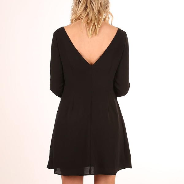 Exhibit your incredible style sense with this beautiful dress. The v-shaped backless and trumpet