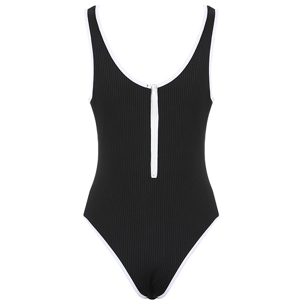 Sexy Backless U-neck Contrast Color Sleeveless Bodysuit