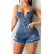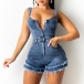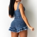 Sexy Backless U-neck Frayed Hem High Waist Slim Fit Sling Denim Romper