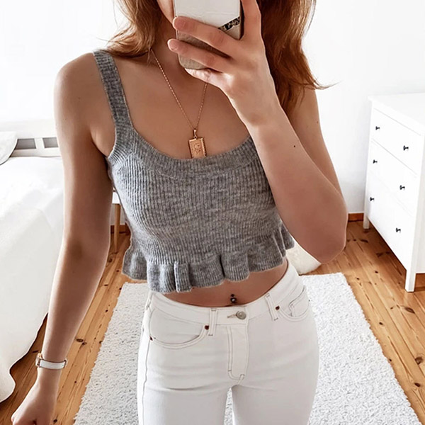 Hey,girls,you can trust in this crop top to be your secret weapon to flaunt off your slender waistline. Sling style,with backless,U-neck and ruffle hem design,this piece can lend you a dash of sexy and flirty vibes. We suggest you matching with a high waist shorts or pants to start your wonderful day.