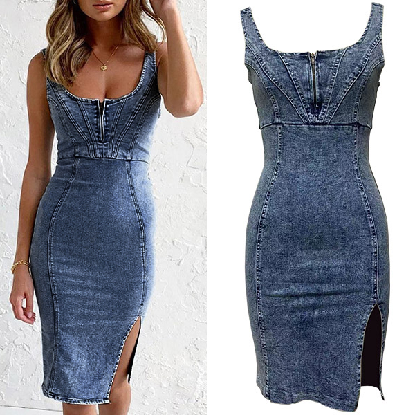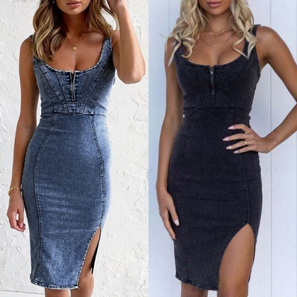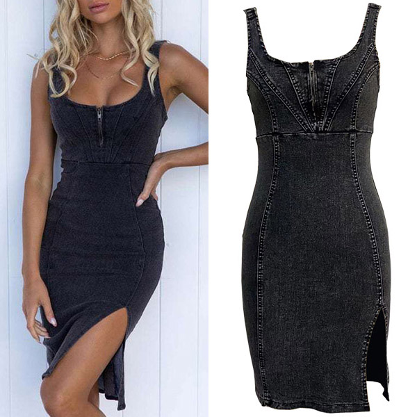 When you throw yourself into this dress,you can easily gain more eyes. Sling style,the backless,U-neck and slit hem design make this piece look so sexy and alluring,while the fit silhouette design can better showcase your perfect and seductive curve. Wanna express your charm? Then let this dress help you.