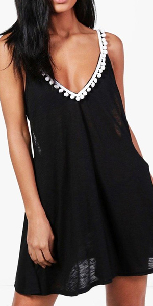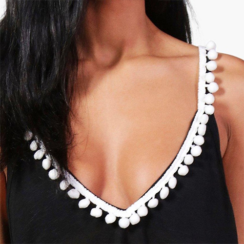 For a sultry look,you can count on this cami dress. Its backless,v-neck and pompon details make this dress