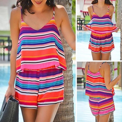 and charming. Including a backless v-neck cami top and a shorts,this two-piece set of course can give you