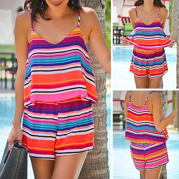 No time for wardrobe matching? Then choose this two-piece set. Colorful striped design makes it look so eye-catching