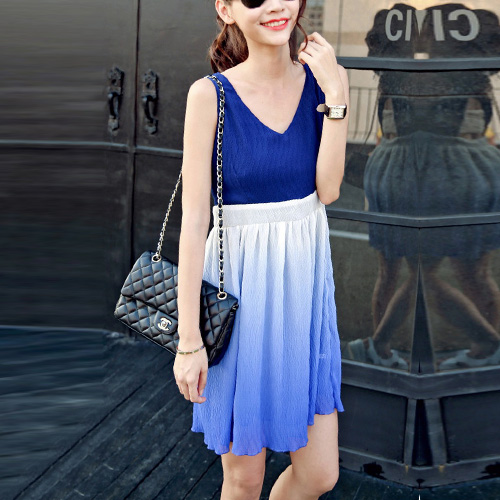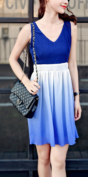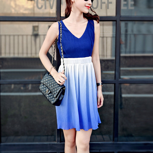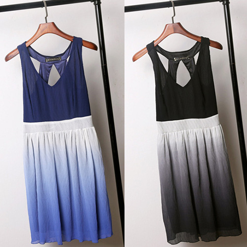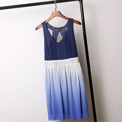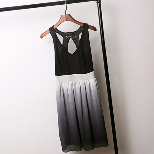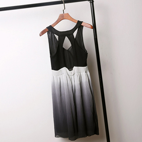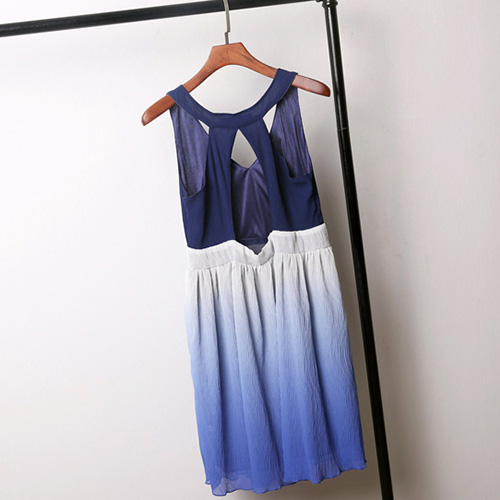 Fashion and flirty, this sleeveless mini dress has sexy style. Its color gradient design