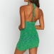 Sexy Backless V-neck Color Gradient Slim Fit Halter Knit Dress