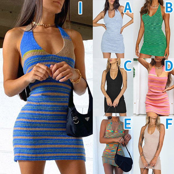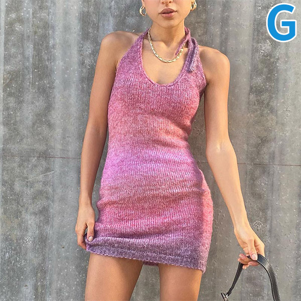 When you go out with this knit dress,you can easily be a pleasant sight to draw more attention. Halter style,with backless and deep v-neck design,which make this piece look so alluring. Moreover,the color gradient design will further enhance its entire charm. And the super-fit silhouette design can better highlight your seductive curve. So why not take interest in it?