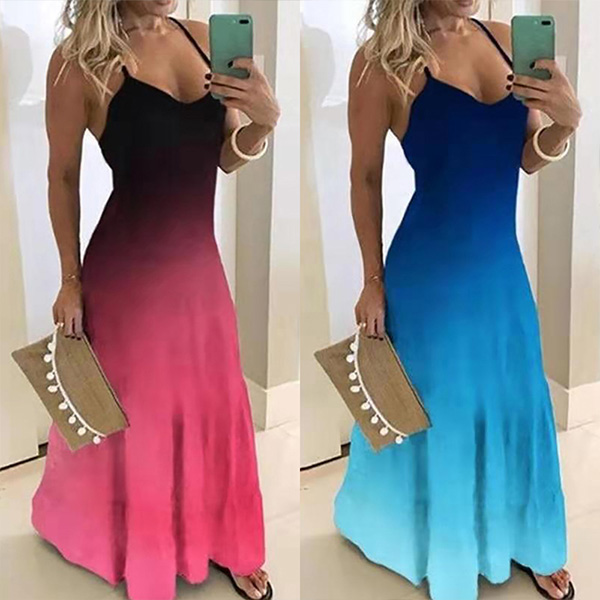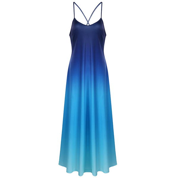 You can easily be a pleasant sight to draw more attention when you dress yourself up with this dress. Sling style,with backless and v-neck design,sexy yet alluring. Moreover,the color gradient design will make this piece look more attractive. You can just slip into this dress to express your beauty and charm.
