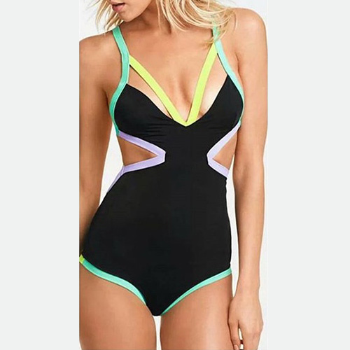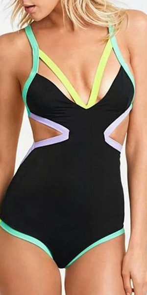 Embrace your sun-soaked weekend with this one-piece swimsuit. Contrast color style,with