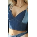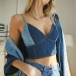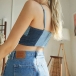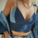 Sexy Backless V-neck Contrast Color Sling Denim Crop Top
