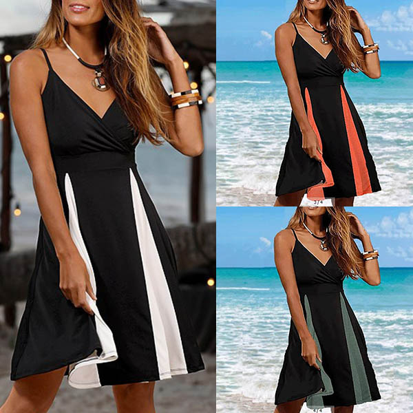 Sexy Backless V-neck Contrast Color Sling Dress