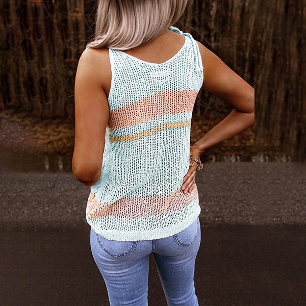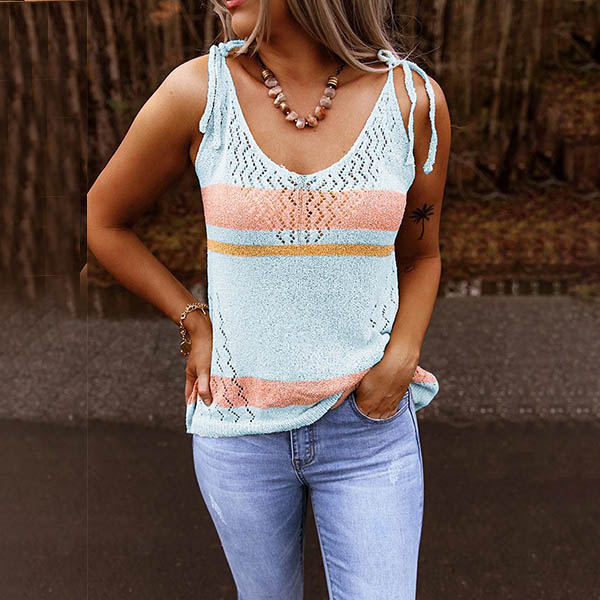Sexy Backless V-neck Contrast Color Sling Top