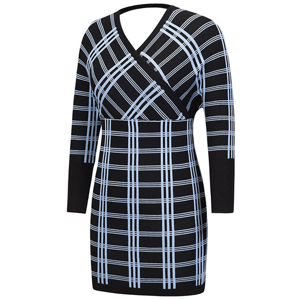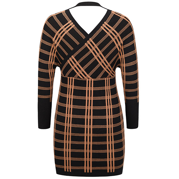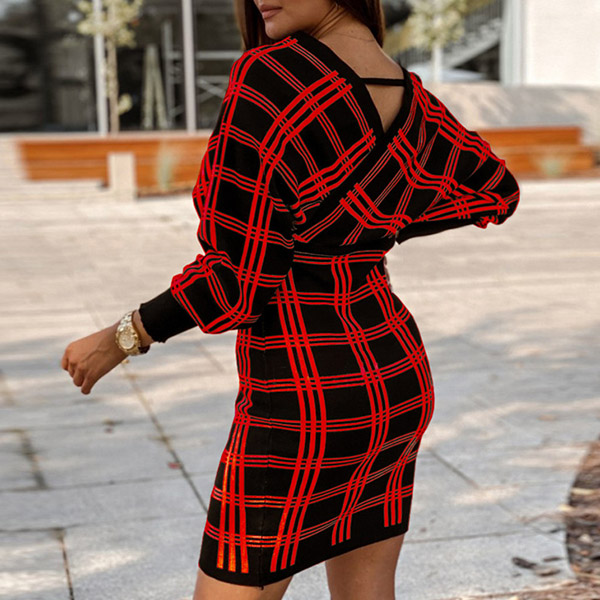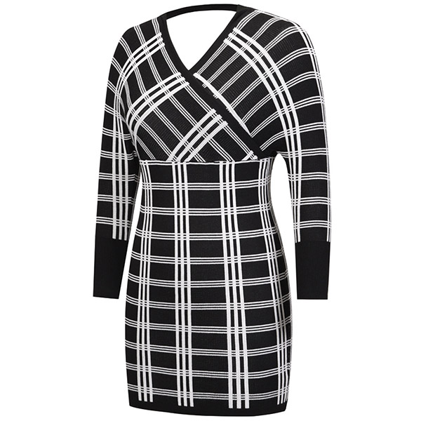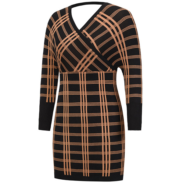 It is a good chance to give your wardrobe a seasonal update by adding this knit dress. The plaid element design makes it look stylish and popular,while the backless and v-neck design will lend you a dash of sexy and flirty vibes. What's more,the domman sleeve design can boost its entire charm. Attracted by this dress? Then don't miss it!