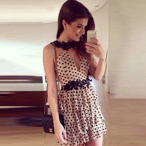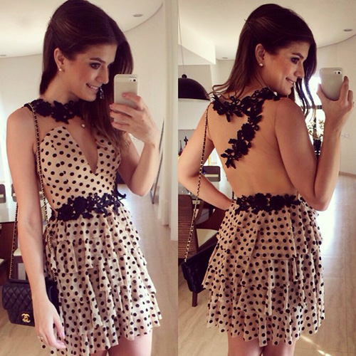 and chiffon elements,sweet and comfortable to wear. Dots pattern,with backless and v-neck style,