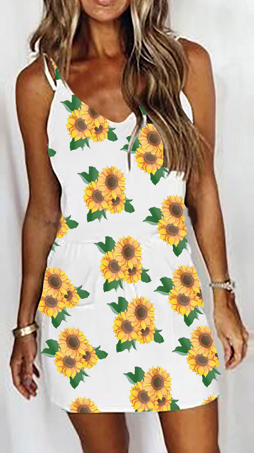 Stylish and effortlessly fashionable, this dress is yearning for a place in your wardrobe. Sling style,with backless and v-neck design,this dress can exude your flirty and alluring side. Features chic printed pattern,with a drawstring waist and front-pocket design,this dress can showcase your figure.