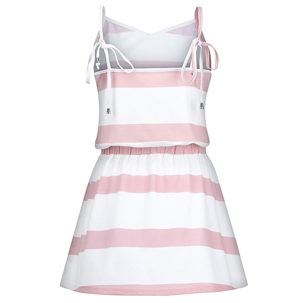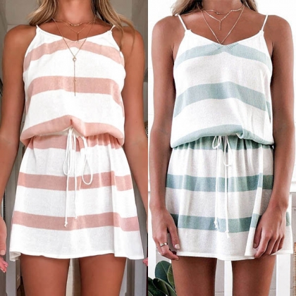 Greet the sun-soaked summer days with a sling dress such as this creation. The stripe element design can help you catch the fashion trend,while the backless and v-neck design will exude your sexy and flirty vibes. Designed with a drawstring waist,which can showcase your figure. Invite it to your summer wardrobe!