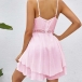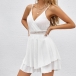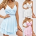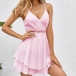 Sexy Backless V-neck Dual-layer Hem Solid Color Sling Dress