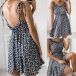 Sexy Backless V-neck Elastic Waist Sling Printed Dress