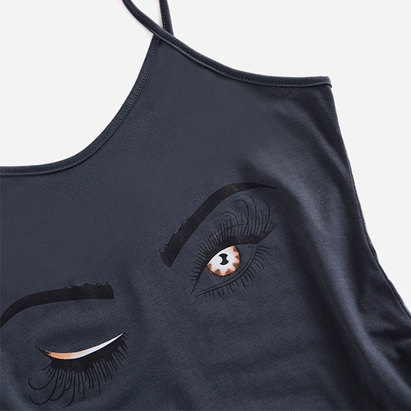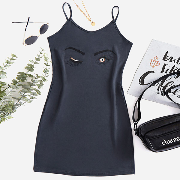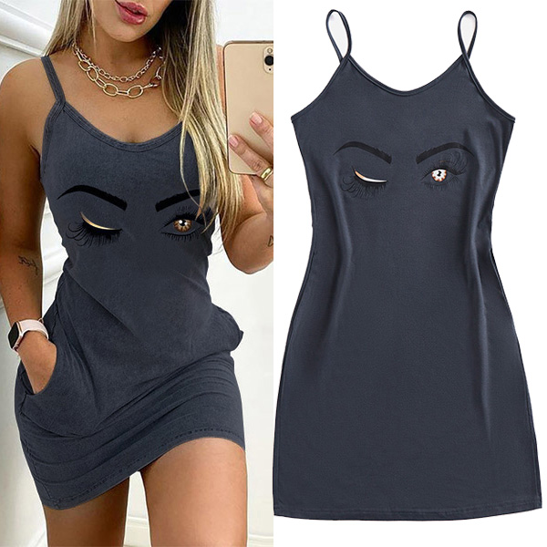 This dress comes with a black tone,designed with eyes pattern,which can lend you some cute and playful vibes,while the backless and v-neck design will make this sling dress look more alluring. And its fit silhouette design can better showcase your slender figure. You can wear it alone or match with your jackets,cardigans.