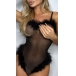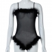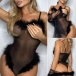 Sexy Backless V-neck Faux Fur Spliced Sling Gauze Bodysuit Lingerie