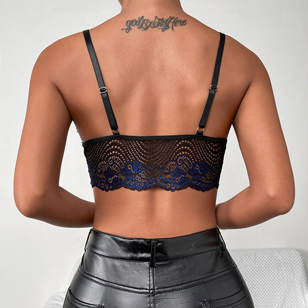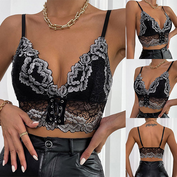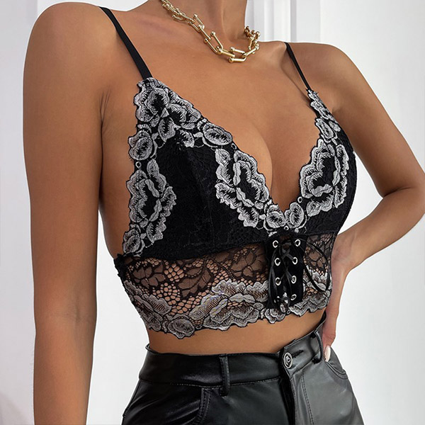 Sexy Backless V-neck Front Lace-up Embroidery Spliced Sling Crop Top