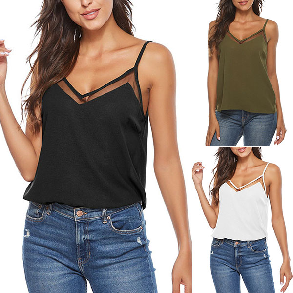 Embrace the sun-soaked summer days with this relaxed top. Sling style,with backless,v-neck and gauze spliced design,which can offer you a more alluring look. Its soft and breathable fabric also can give you a cool and comfortable day. Try to match with a shorts to achieve for a charming summer look.
