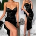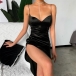When invited to some parties,you can trust in this dress to make you be the focus. Sling style,with backless,v-neck and high slit hem design,this details make this piece look so sexy and alluring. Meanwhile,your slender figure also can have a full display in this dress. When paired with your sexy heels and elegant clutch,you are sure to stand out in the crowd!
