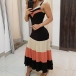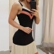 From your daytime gatherings to weekend trips,this dress can give you a perfect transition. The backless,v-neck and sling design can make you look sexy and alluring,while the contrast color element design will make this piece look more attractive and stylish. On these sunny days,you can add a sweet straw hat to make yourself look more beautiful.
