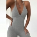 Sexy Backless V-neck High Waist Contrast Color Sling Jumpsuit
