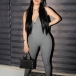 Hey,girls,you are sure to gain more eyes when you don this jumpsuit. Sling style,with backless and v-neck design,this piece can make you look alluring. The contrast color element design will make this piece look more attractive. For your night events,you can trust in this piece to make you be the focus!