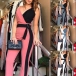 Sexy Backless V-neck High Waist Contrast Color Sling Jumpsuit
