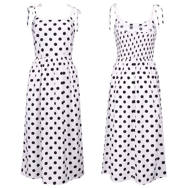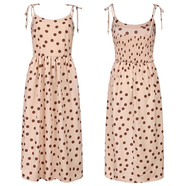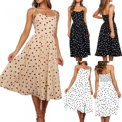 Sexy Backless V-neck High Waist Dots Printed Sling Dress