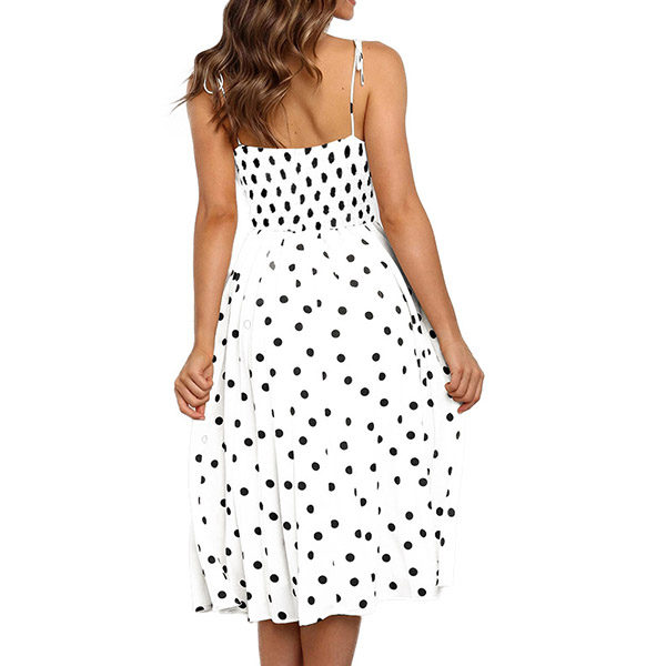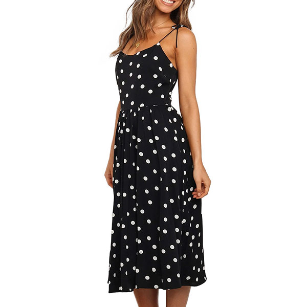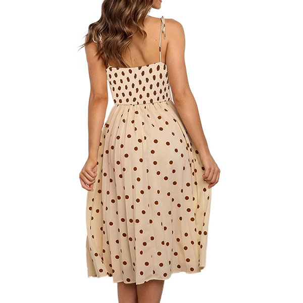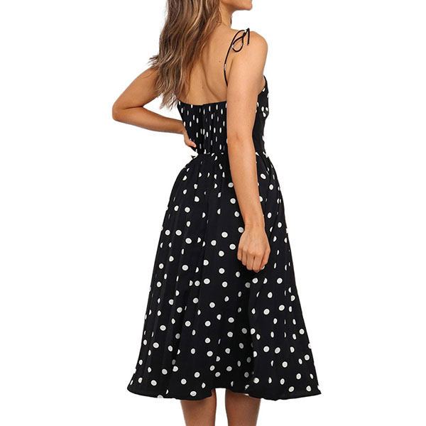 Embrace your weekends with a delightful dress such as this piece. The dots printed details make it look playful yet eye-catching,while the backless and v-neck design will lend you a sexier look. No matter for your night dating or weekend out,you can trust in this beautiful dress!