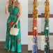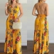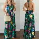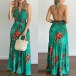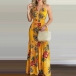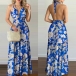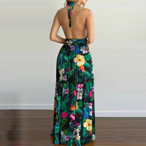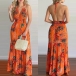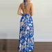 Sexy Backless V-neck High Waist Halter Printed Maxi Dress