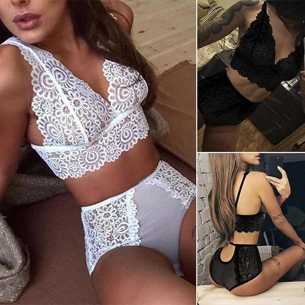 The lace details can lend you some flirty and feminine appeal. Including a backless v-neck bra and a high waist briefs,this underwear set can offer you an all-day comfort with its soft and breathable fabric. It is perfect fit for your daily wear,hot nights and lingerie parties.