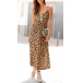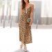 Sexy Backless V-neck High Waist Leopard Printed Sling Beach Dress