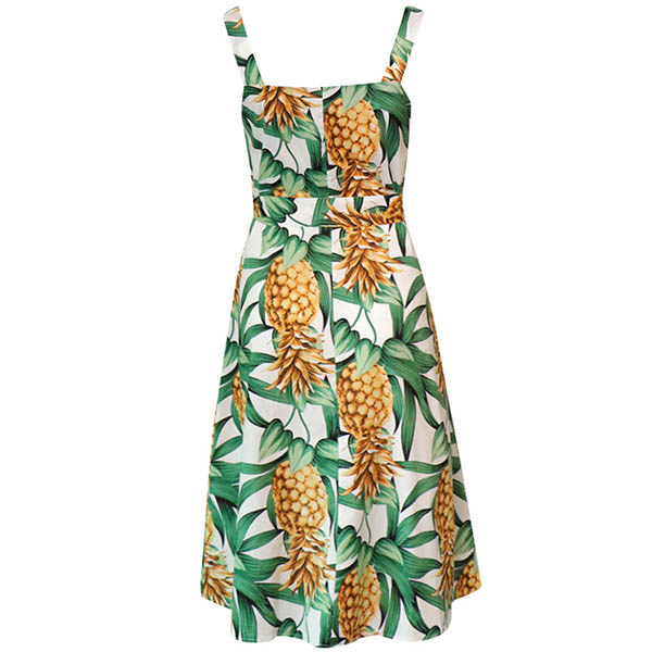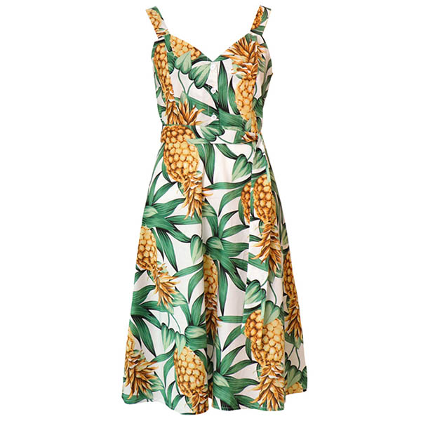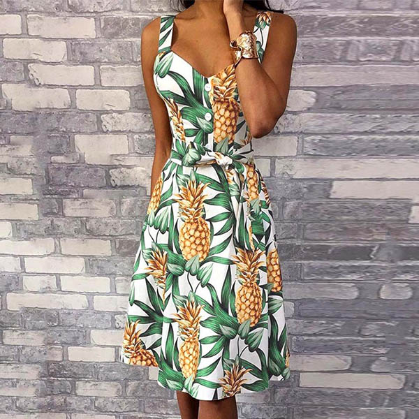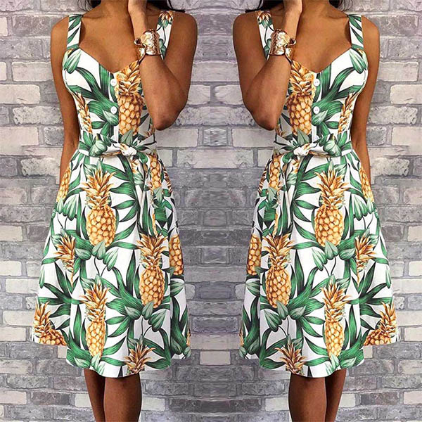 Injecting some flirty appeal on your weekends is easy when dressing up with this dress. The pineapple printed details make this piece look so eye-catching and playful,while the backless and v-neck design can make you look sexier. For your night dating on these summer days,this dress can be a good choice.