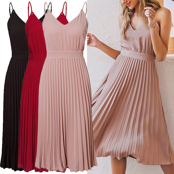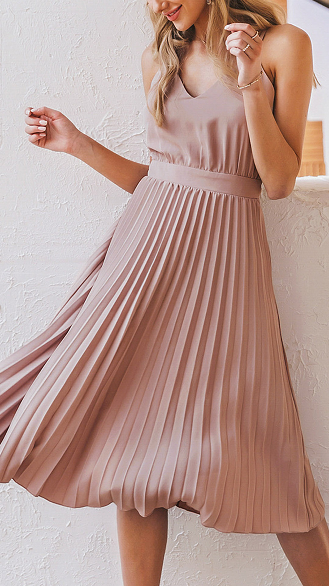 Create a sassy look with the flirty details of this dress. Solid color tone design makes it look generous yet elegant,while the backless,v-neck and pleated hem design will make this piece full of sexy,flirty vibes. For your summer events,you can trust in this little stunner to express your beauty and charm.